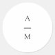 Minimalistische Monogram Trendy Chic Typografy Wedding Classic Round Sticker in Schwarz/Weiß