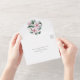 Elegantes Blumenmuster in einem Einladungs-Template mit rsvp-Karte für eine bequeme und kostengünstige Option für preisbewusste Paare. Die Hochzeitseinladung enthält einen Strauß von Aquarellen, die in rosa Magnolien-Blume gestrichen wurden, sowie Eukalyptus-Blätter. Die UAWG postcard hat Ihre Mailingadresse auf der Rückseite und Ihre Gäste lösen sich einfach ab und schicken sie zurück an Sie. Dieses schöne Ganze in einer Hochzeitseinladung ist ideal für eine Frühjahrs- oder Sommerhochzeit.