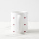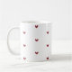 Eine einfache und elegante weiße Kaffeetasse, verziert mit einem minimalistischen Muster aus kleinen roten Herzen. Dieses saubere Design ist perfekt für diejenigen, die subtile und ästhetische Stile lieben. Es ist ein wunderbares Geschenk für einen geliebten Menschen, einen Freund oder als süße Belohnung für sich selbst, um den täglichen Kaffee oder Tee zu genießen.