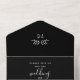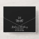 Diese mit Monogramm Hochzeitseinladung strahlt Eleganz und Einfachheit mit minimalistischem Design aus. Oben nehmen die Initialen des Paares die zentrale Bühne, schön verwoben und mit einem zarten Vektorzweig geschmückt, was der Gesamtkomposition eine Touch der Natur hinzufügt. Die Verwendung eines schwarzen Hintergrunds und eines weißen Textes schafft einen auffallenden Kontrast, indem die Formalität des Ereignisses betont und ein Gefühl der Raffinesse hinzugefügt wird. Der in der Einladung verwendete Kalligraphie-Schriftart verleiht der Einladung eine anmutige Handschrift und verleiht der Einladung eine persönliche und intime Touch. Zusammen mit dem serifenlosen Sans-Schriftart schafft es ein harmonisches Gleichgewicht zwischen klassischen und modernen Elementen, das sowohl den traditionellen als auch den modernen Geschmack anzieht. Die durchdachte Einfügung einer separaten RSVP-Karte in weiß mit schwarzem Text ermöglicht es den Gästen, einfach auf die Einladung zu reagieren. Diese Auswahl gewährleistet die praktische Durchführung und bewahrt gleichzeitig die ästhetische Kohärenz der Suite. Zusammenfassend lässt sich sagen, dass diese mit Monogramm Einladung zu einer Hochzeit ein Meisterwerk von schlichter Schönheit ist, das ein aufwändiges Monogramm-Design, minimalistisches Schwarz-Weiß-Schema und eine perfekte Mischung aus Kalligraphie und Sans Serif-Schriftart vereint, die alle zu einer verfeinerten und unvergesslichen Hochzeitsfeier vereinen.