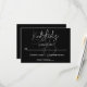 Diese elegante schwarz-weiße RSVP-Karte eignet sich perfekt für eine moderne Hochzeit, das schlichte Design zeichnet sich durch elegante weiße Kalligraphie auf schwarzem Hintergrund aus.