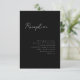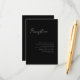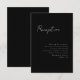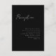 3.5x5 Minimalskript, Empfang-Gehäusekarte. Weißer Text auf schwarzem Hintergrund. Teil einer Hochzeitskollektion.