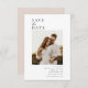 Diese Save the Date-Karte verfügt über elegante Script- und Serif-Schriftart mit einer passenden Bildvorlage in der Mitte. Dieses Stück ist perfekt für ein elegantes, minimales und elegantes Hochzeitstil. Personalisieren Sie diese Save the Date Karte mit dem Foto, den Namen und dem Hochzeitsdatum des Paares.