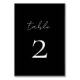 Minimale Script-Tischnummer. Weißes Skript auf schwarzem Hintergrund. Teil einer Hochzeitskollektion.