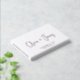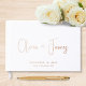 Dieses minimale und elegante Gästebuch für Hochzeitsfeiern bietet Ihnen die Wahl zwischen Goldfolie, Silber oder Rose, Ihren Vornamen in einem schicken, modernen Drehbuch, Ihrem Hochzeitsdatum und Ihrer Location in klassischer Serifentypografie und Ihrem personalisierten Titel auf dem Rücken.