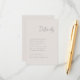 3.5x5 minimales Skript, Details Gehäuse Karte. Dunkelgrauer Text auf hellbeigem Hintergrund. Teil einer Hochzeitskollektion.