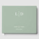 Modernes und einfaches Hochzeitsbuch oder Brautgastbuch in Grün. Weißer Text in minimalem Stil. Fügen Sie einfach Ihre Initialen oder Monogramm, Text und Namen hinzu.