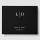 Modernes und einfaches Hochzeitsbuch oder bridal Gästebuch in schwarz. Weißer Text in minimalem Stil. Fügen Sie einfach Ihre Initialen oder Monogramm, Text und Namen hinzu.