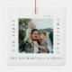 Minimal und modern schlicht Foto halten neue Zuhause-Foto-Ornament, um Ihre ersten Weihnachten in unserer neuen Zuhause zu gedenken. Das Design zeichnet sich durch ein einfaches minimales Design mit einem quadratischen Foto-Design aus, um Ihr neues Zuhause-Foto anzuzeigen. "Unser erstes Weihnachten", Jahr und Familienname wird in einem schlichten, modernen Design rund um das Foto ausgestellt. Zwei Foto mit einem Foto auf der einen und einem zweiten Foto auf der anderen Seite des Ornaments.
