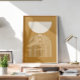 Eine minimale abstrakte Kunst mit einem geometrischen Design aus der Mitte des Jahrhunderts in Senf und Schwarz auf weißem Hintergrund. Ein perfektes Zuhause-Accessoire für einen Minimalisten.