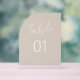 Minimaler Arch Form Script Beige Tischnummer Acrylschild
