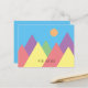 minimale Gebirgskunst einfache mcm Postkarte, mit einfach geschnittenen Formen in lila rosa Gelb am blauen Himmel mit orangefarbenen leuchtenden Farben 60er oder 70er bunt buntes lustiges Design bearbeiten Text-Schriftart leicht, Sie können dieses DESIGN auf anderen Zazzle-Produkten übertragen und anpassen, um die meisten der Zazzle-Objekte.