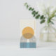 Eine minimale abstrakte Kunst mit einem geometrischen Design in Senf, Blau und Schwarz auf weißem Hintergrund