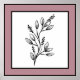 Minimalistische Schwarz-Weiß-Blätter und kleine Knospen mit dünnen schwarzen Konturen innerhalb einer lila Grenze, gerade rechtzeitig für den Frühling und den Sommer.