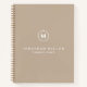 Modernes Notebook mit minimalem Design in Beige und Weiß. Individuelle Name und Titel zentriert sich in einem stilvollen, einfachen Schriftart mit einem kostenlosen Minimal-Monogramm-Medaillon. Personalisieren Sie mit Ihrem Monogramm Initial-, Name-, Beruf- oder benutzerdefinierten Text über das Menü Anpassen. Ideal für Berater, Anwälte, echte Anwesen-Agent, Corporate- oder Führungskraft-Coaches oder andere berufliche Geschäfte oder ein nachdenkliches Bürogeschenk für ihn oder sie.