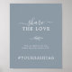 Dieses minimale Blatt blau und weiß Share die Liebe Hochzeit Hashtag Poster-Zeichen ist perfekt für eine elegante Hochzeit. Die Silhouette ist in Weiß gehalten, mit einem dunkelblauen Hintergrund und einem klassischen minimalistischen Stil. Personalisieren Sie das Zeichen mit Ihrem Hochzeitshashtag.