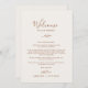 Diese minimalen Boho Creme Begrüßungsbriefe & Reisekarten sind perfekt für eine Hochzeit. Die Silhouette ist schlicht und besteht aus einem grünen Blatt in erdbrauner Orange auf einem cremefarbenen Hintergrund mit minimalistischem Wüstenböhmischen Stil. Auf der Vorderseite der Karte befindet sich ein Begrüßungsschreiben, auf der Rückseite der Karte befindet sich der Hochzeitstag. Diese Noten sind ideal für Hochzeiten in Urlaubsort und Begrüßungstaschen für Hotelgäste.