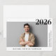 Minimale, moderne Ankündigung des Abschlusses mit dem Foto des Absolventen und dem Namen, der Schule und dem Unterrichtsjahr in einfacher Typografie.