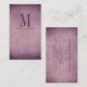 Einfache minimalistische berufliche Visitenkarte mit einem lila Monogramm auf einem lichtbedrückten lila Hintergrund. Geeignet für fast jeden Beruf, wo eine minimale moderne Ästhetik gewünscht wird. Fügen Sie den Titel Ihres Beruf auf der Kartenrückseite hinzu. Ideal für Berater, Immobilienmakler, Veranstaltungsplaner, Schönheitssalon, Haarstylisten, Fotografen und Firmentitel.