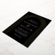 Einfache und elegante Einladungen mit einem dünnen Metallbogen, der Ihre Zeremonie Details umrahmt. Modernes Schwarz mit Goldfolie.