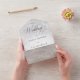 MIT ODER OHNE QR-CODE ODER ABENDESWÄHLUNGSOPTIONEN. Dieses Design zeichnet sich durch einen schlichten, silbergrauen Marmorboden aus, der unter einem weichen, transparenten Overlay aus weißem Marmor gehalten ist. Auf der Rückklappe werden die Initialen von Braut und Bräutigam angezeigt. Einfach und elegant. Erstellt von der einfachen Farmhouse Press.