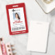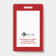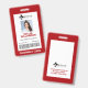 Ein einfaches, minimales rotes Rahmendesign, das sich perfekt für Medizin, Gesundheitswesen, Notfallabteilung usw. eignet. Die Abzeichen-ID-Informationen, das Logo, die Foto-ID, die ID-Nummer und der optionale Strichcode sind im mittleren weißen Rahmen genau entworfen, wobei der Jobtitel am unteren Rand des Abzeichens angezeigt wird. Auf der Rückseite ist das gleiche Design mit einer Adresse und Logo.