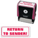 Dieses Design aus Gummi-Briefmarke beinhaltet die Nachricht "RÜCKKEHR AUF SENDER!". Es kann verwendet werden, um anzugeben, dass die empfangene Post an die falsche Adresse geliefert wurde, und sollte an den Absender zurückgeschickt werden.