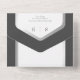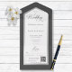 MIT ODER OHNE QR-CODE ODER ABENDESWÄHLUNGSOPTIONEN. Dieses Design zeichnet sich durch einen schwarzen Holzkohle-Hintergrund mit einem weißen Textbereich aus, der in Imitaten auf Silberfolie gerahmt ist. Ein Monogramm mit dem ersten Auftakt der Braut und des Bräutigams auf der Außentafel vervollständigt es. Erstellt von der einfachen Farmhouse Press.