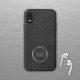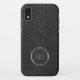Ein iPhone XR Gehäuse mit einem minimalen Design von Imitaten Leder und silbernen Ringen zum Einfügen Ihrer Initialen.
