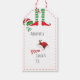 Das ist ein einfaches, minimales, niedliches, lustiges Design mit den Elfbeinen mit den grünen und weißen gestreiften Strumpfhosen und den roten Elfschuhen, mit winzigen Klingelglocken auf der Vorderseite mit einem Elfhut, der an einem Schuh befestigt ist. Ein rotes Nahtmuster verläuft am Rand des Tags und eine Weihnachtsmannmütze mit Rentiergeweih auf weißem Hintergrund auf der Vorderseite. Und auf der Rückseite ist ein helles festliches, lustiges, grün-weiße Weihnachtskerzengestreifen. Es ist einfach, lustig, lustig, lustig, festlich! Sie können die Farben sogar Ihren Favoriten anpassen. Mix und Spiel und paaren Sie es mit einer Weihnachts Candy Overload Kollektion Umhüllung, Band, Geschenktasche mit einem lustigen kleine Geschenk und Geschenk zu entsprechen. Das schönste Weihnachtsfest, Holly Jolly, Festlich, Elf Fru für Sie!