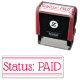 Dieses Design der Gummi Briefmarke beinhaltet die Meldung "Status: PAID". Es könnte vielleicht verwendet werden, um anzugeben, dass eine Rechnung oder Rechnung bezahlt wurde.