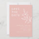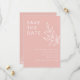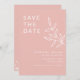 Minimales elegantes Rosa-Save the Date-Foto. Stilvoll minimalistisch Save the Date Fotokarte mit schlichtem elegantem Schriftart und Blattwerk in Rosa und Weiß, leicht editierbar,