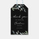 Minimal, modern, Eukalyptus Design, schwarz "Dankeschön-Brautparty Geschenketiketten" mit dem Namen und dem Datum der Brautparty. Personalisieren Sie sich in wenigen Minuten! Geben Sie Ihre Daten ein, Sie können Schriftart, Position usw. individuell durch "weiter personalisieren" auswählen.