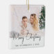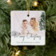 Wünschen Sie Familie und Freunde als besondere Frohe Weihnachten mit diesem modernen minimalistischen Foto Keepsake-Ornament. Der kohlegraue Text liest "Frohe Weihnachten" in trendiger Handschrift. Ersetzen Sie das Beispielbild einfach durch Ihr Lieblings-Foto und fügen Sie Ihren Familiennamen oder Vornamen und das unten stehende Jahr hinzu. Ein Bildschirm mit weißem Farbverlauf ermöglicht den Pop des Textüberlagers.