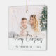 Minimales Foto Frohe Weihnachten Grau Script Keramikornament