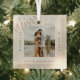 Minimal und modern schlicht Foto halten Foto Glas-Verzierung zu Ihrem ersten Weihnachten verheiratet. Das Design zeichnet sich durch ein schlichtes minimales Design mit einem quadratischen Foto-Design aus, um Ihr besonderes Hochzeitsgeschenk-Foto zu zeigen. "Verheiratet & Merry", Jahr- und Paarname in einem schlichten, modernen Design rund um das Foto.
