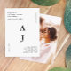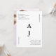 Diese moderne, minimalistische Schwarz-Weiß-Hochzeitseinladung besticht durch ein großes, mit Hochzeitsdetails gerahmtes Monogramm und ein komplettes Foto.