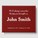 Dieses minimalistische Begräbnis-/Gedenkbuch enthält die Botschaft "Wir werden uns immer an die Freude erinnern, die Sie uns gebracht haben", sowie den individuellen Namen und das Geburtsdatum des weitergegebenen Individuums. Es verwendet einen dunkelroten Hintergrund und einen weißen Text. Es könnte genutzt werden, um hochgeschätzte Erinnerungen von jemandem aufzuzeichnen, der kürzlich verstorben ist.