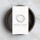 Ein handgezeichnet Drehbuch in einem Rundmuster wird zu einem unkonventionellen, modernen und abstrakten Logo auf diesem beruflichen Visitenkartendesign. Ihr Name oder Firmenname basiert auf einem minimalen Schriftart-Set auf weißem Hintergrund. Originale Kunst und Design © 1201AM Design Studio | www.1201am.com