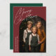 Elegante, weiße Schrift mit fröhlicher Weihnachtskarte, personalisieren Sie das Foto und den Text des Urlaubs.