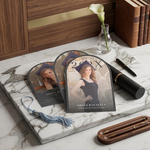 --Full-Photo Arch Integration: Your graduation photo is showcased within a clean, architectural arch, symbolizing the gateway to your new chapter.
