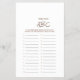 Add a touch of simple elegance to your baby shower with this classic 'Baby Name ABC' game flyer. Designed with a clean, minimalist aesthetic and a beautiful brown typography, this game is sure to be a hit with your guests. It's a fantastic way to engage everyone in the celebration and spark conversations about your little one's future name. This printable flyer provides a fun challenge for guests to fill in a baby name for each letter of the alphabet, with the first person to finish winning bragging rights (or a small prize!). The straightforward layout ensures easy participation for all ages, making it a perfect addition to any baby shower theme.