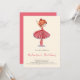 Simple and cute ballerina birthday invitation with an illustration of a girl with a pink tutu. Illustrated and designed by Patricia Alvarez.