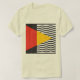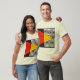 Abstract geometric T-shirt inspired by Bauhaus and mid-century modern design. The work is composed of simple geometric shapes within a balanced square, with flat, high-contrast colors including red, yellow and black wavy lines, giving it a clean, elegant contemporary feel.