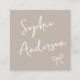 Minimalist Beige with Elegant Script & Bow Quadratische Visitenkarte