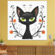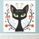 Black Cat Filigree / Quilling style design canvas wall art print featuring a Black Cat with large green eyes surrounded by flourishes and flowers.