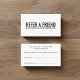 Simple fully customizable referral card template for salons, shops. Minimal elegant design with black and white colors, bold fonts.