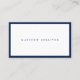 Minimalist business card with blue trim on the front in an upscale typography layout. Professional and easy to customize.