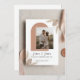 Modern minimalist boho wedding invitation with photo and terracotta arch design, featuring earthy tones and elegant typography, fully editable template.