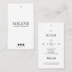 Modern minimalist clothing hang tag template designed for fashion brands, boutiques, and handmade clothing businesses. The clean and elegant layout includes space for style name, size selection, care instructions, and price on one side, with a modern brand label on the other.